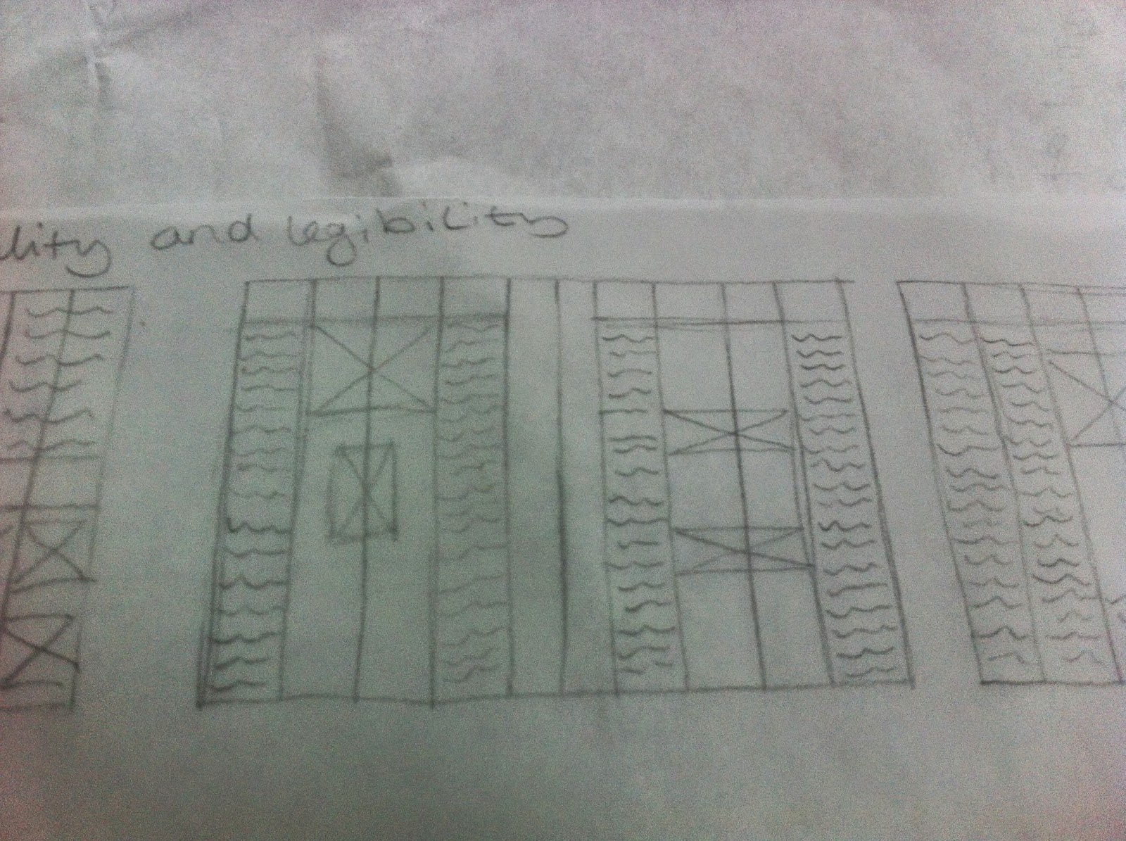 I stuck with the four column grid that I had at the crit but tried to insert some horizontal lines to form three rows across the spread.